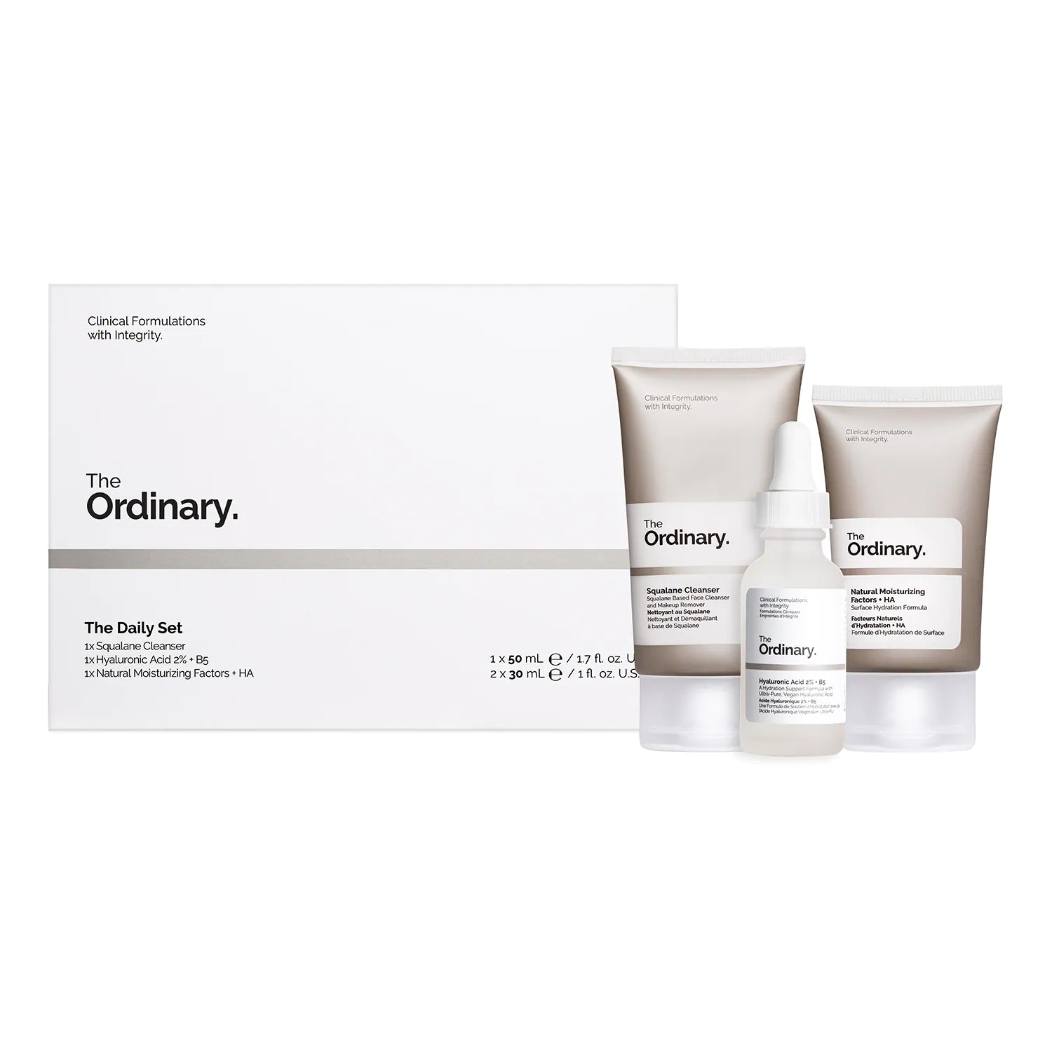Le Set Quotidien - Coffret soin visage de The Ordinary est un ensemble de trois produits conçus pour une utilisation quotidienne.