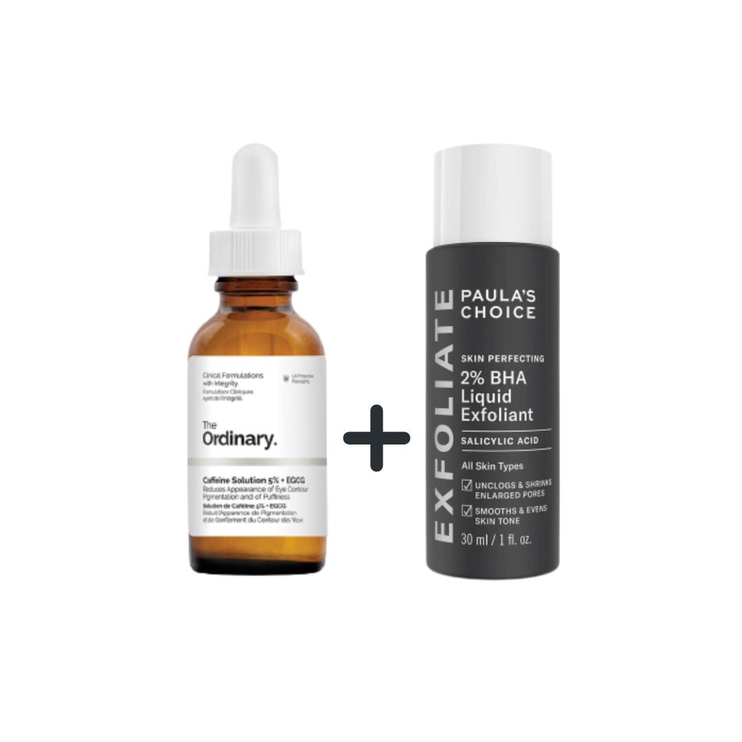 Des recherches indépendantes ont montré que l'utilisation topique de caféine et de EGCG aide à diminuer les poches et les cernes de la zone du contour de l'oeil.