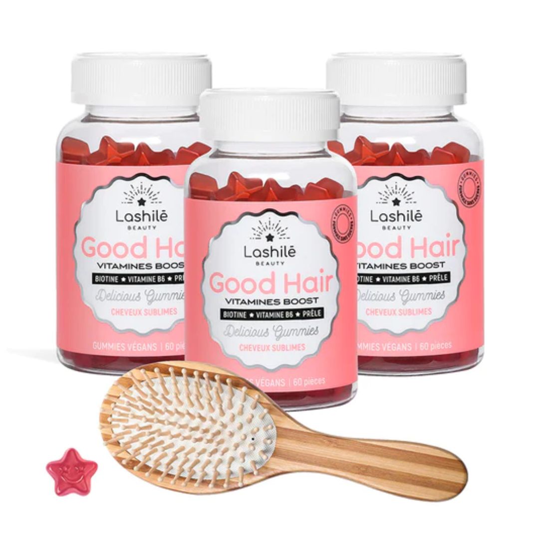 Ce pack cadeau exclusif de 3 mois vous permet d'économiser avec notre brosse en bambou Lashilé Beauty offerte ! (Dans la limite des stocks disponibles).